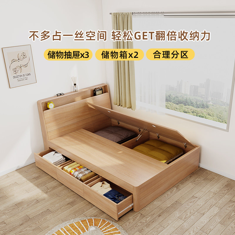 床高箱储物小户型简约出租房收纳可定制单人床 榻榻米床带床头板式
