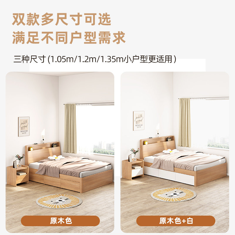 一米二单人床1.35m小户型现代简约高箱储物儿童床一米抽屉收纳床