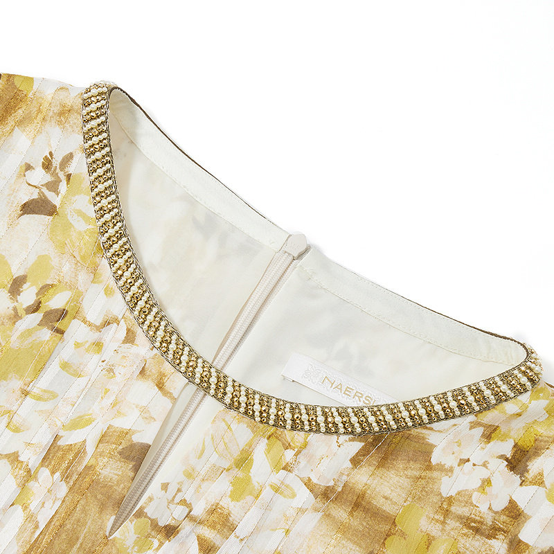 为您提供商品NAERSI娜尔思时尚 裙子 气质印花领口高级感珠钻连衣裙度假风春秋季的详细介绍,