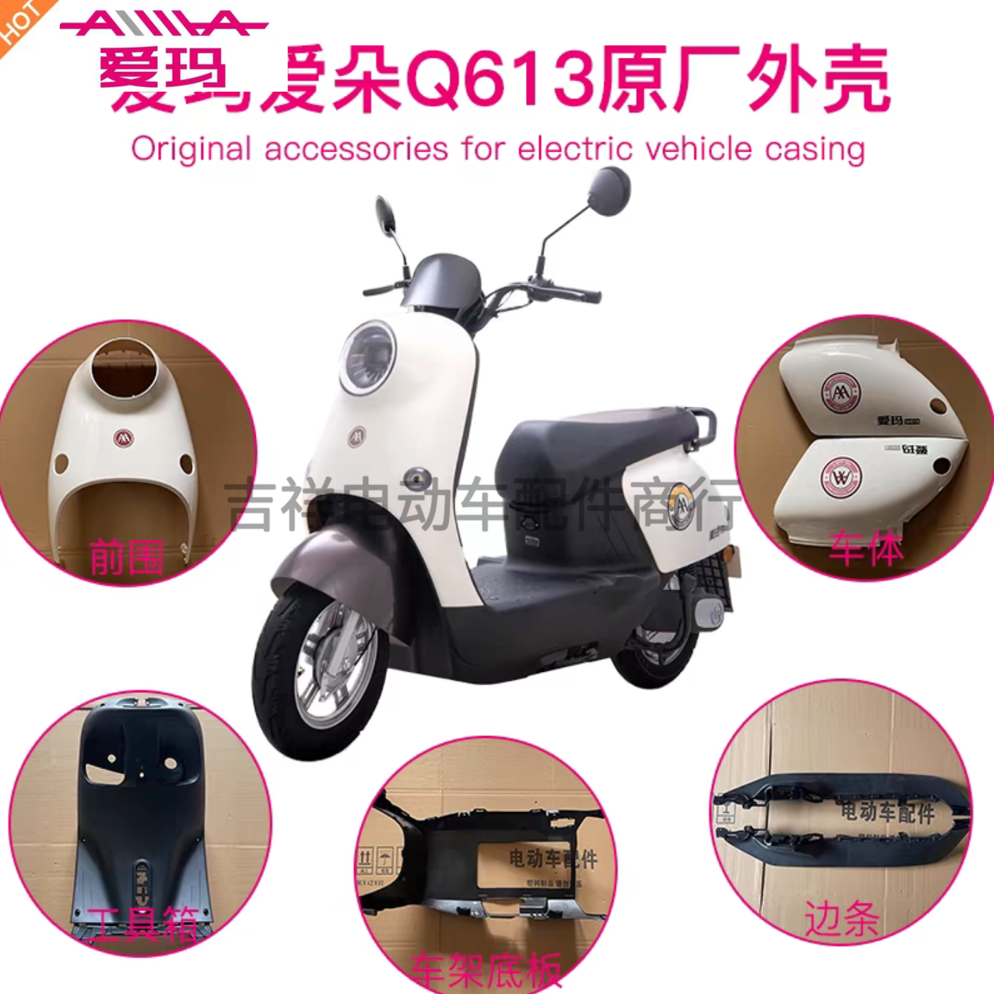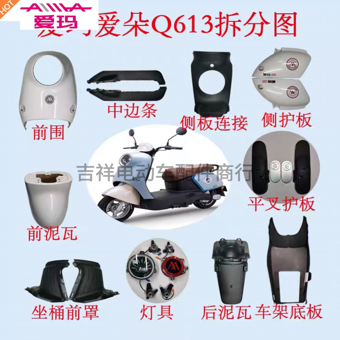 为您提供商品爱玛爱朵Q613Q623Q616电动车全套塑件外壳配件大全前卫前泥板边条的详细介绍,
