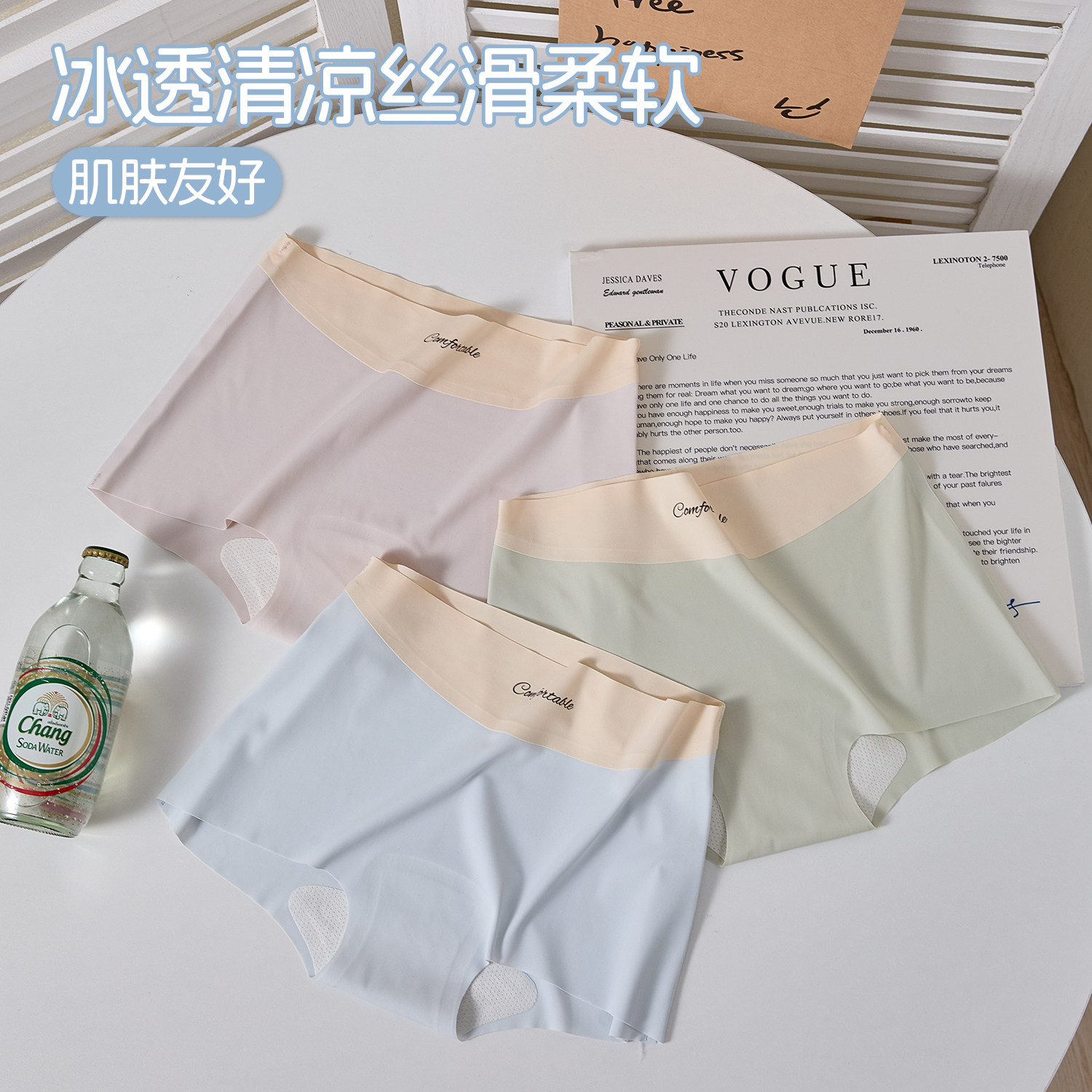 冰丝透气不闷短裤 女 女10A抗菌纯棉裆裸感薄款 六只兔子小平角内裤由
