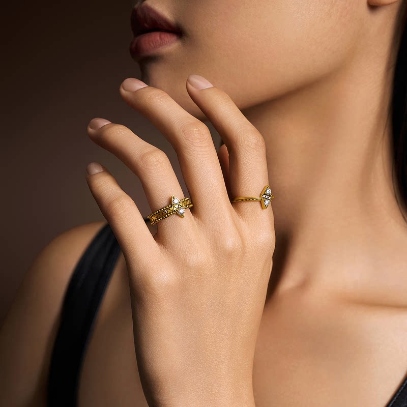 沙金盈盈漫舞蝶活口戒指女繁花镶钻小众指环仿真黄金 妙曦金店同款
