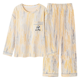 安比斯情侣睡衣舒适纯棉秋季 男女同款 休闲家居服套装 可出门 女长袖