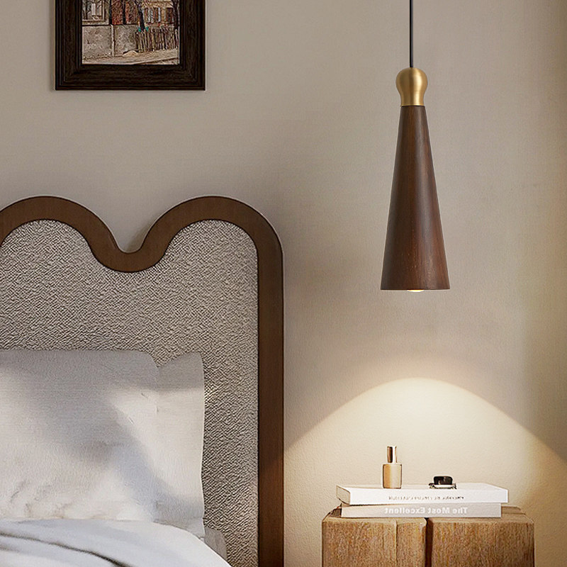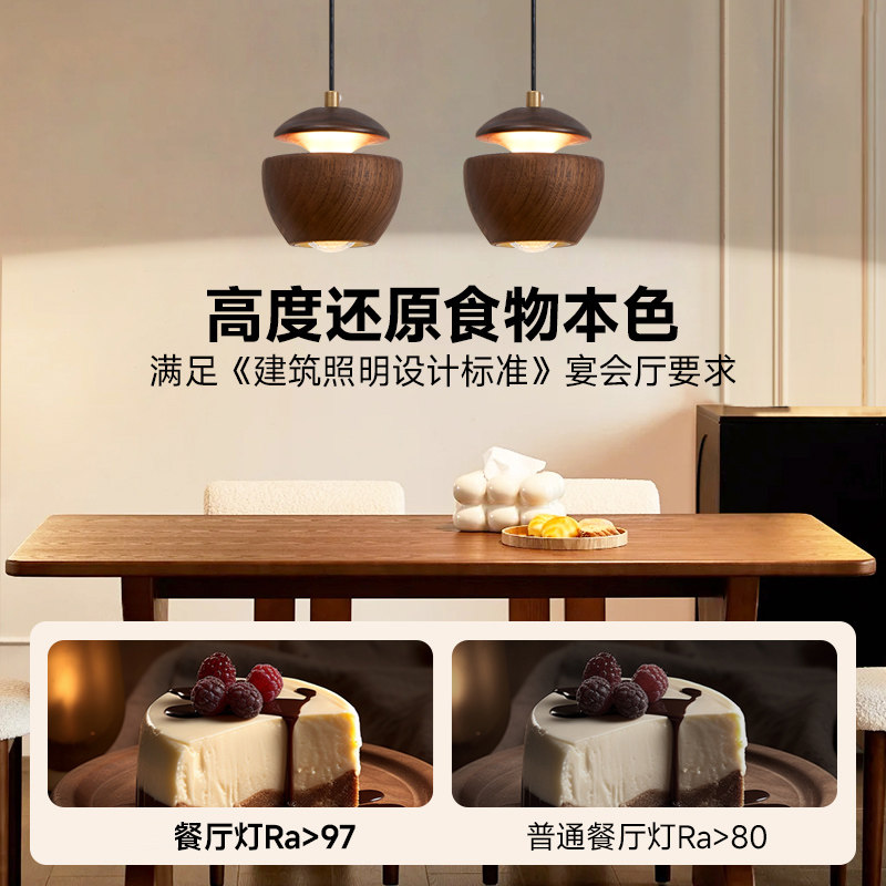 卧室床头小吊灯现代简约创意轻奢胡桃木高级感吧台餐厅吊灯 新中式