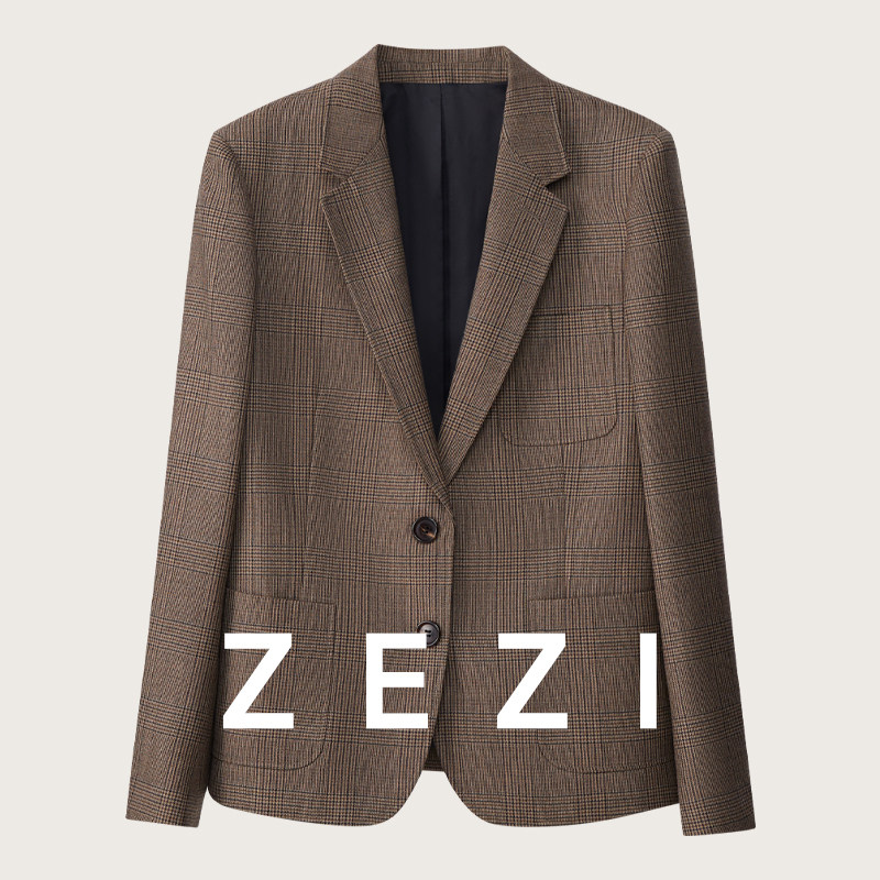 西服正装 zezi老钱风经典 气质通勤时尚 春秋款 平驳领羊毛西装 女新款由