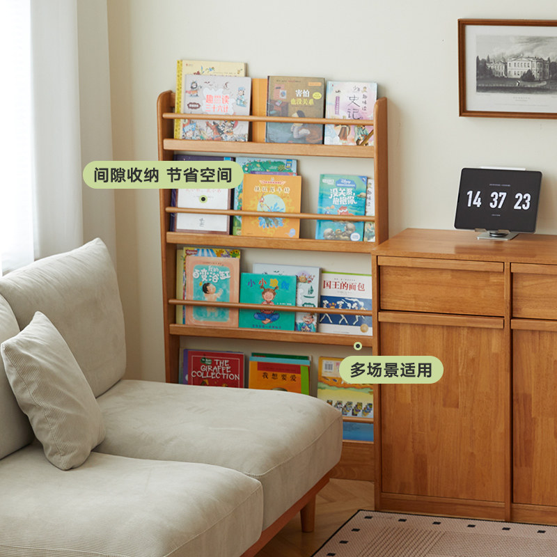 实木儿童书架落地置物架靠墙绘本架现代简约杂志架10cm门后薄柜由