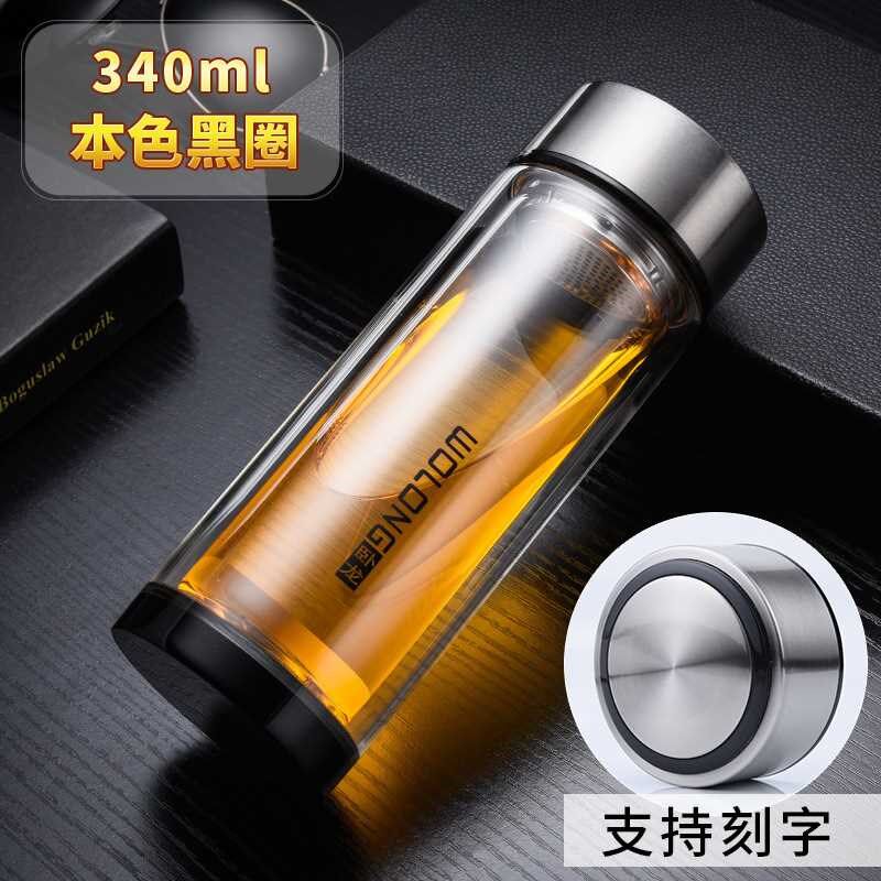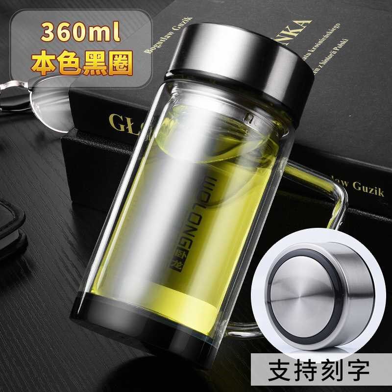 YNTI双层玻璃杯隔热男女水杯加厚透明茶杯钢化防摔有盖喝水口由