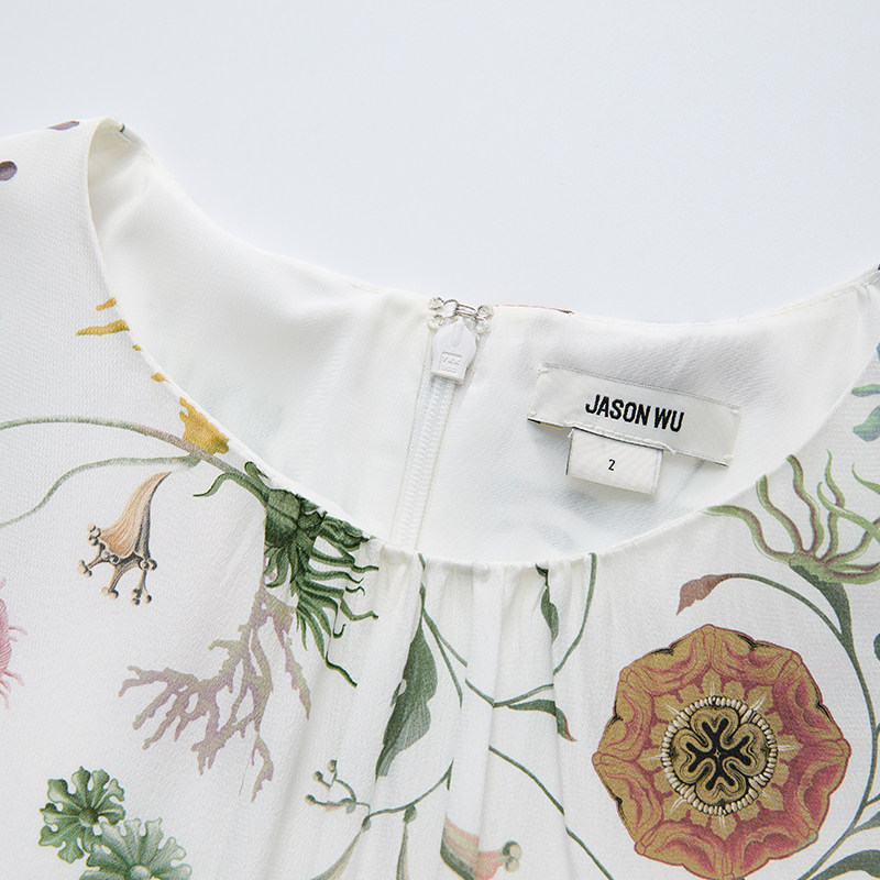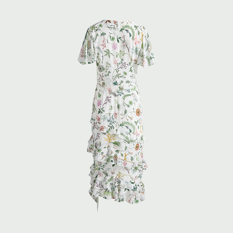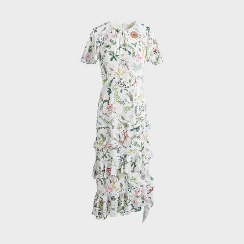 JASON 新款 印花荷叶边高腰新中式 百搭裙子长裙连衣裙由
