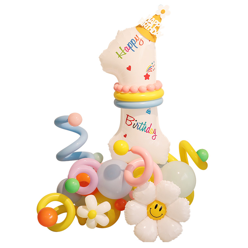 儿童123白色生日数字气球立柱 饰 男孩女孩宝宝周岁派对场景布置装