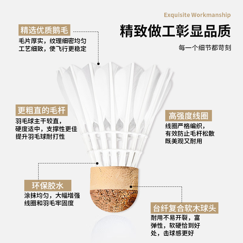 耐打抗风羽毛球比赛训练专用稳定室外学习训练球 羽毛球鹅毛12支装