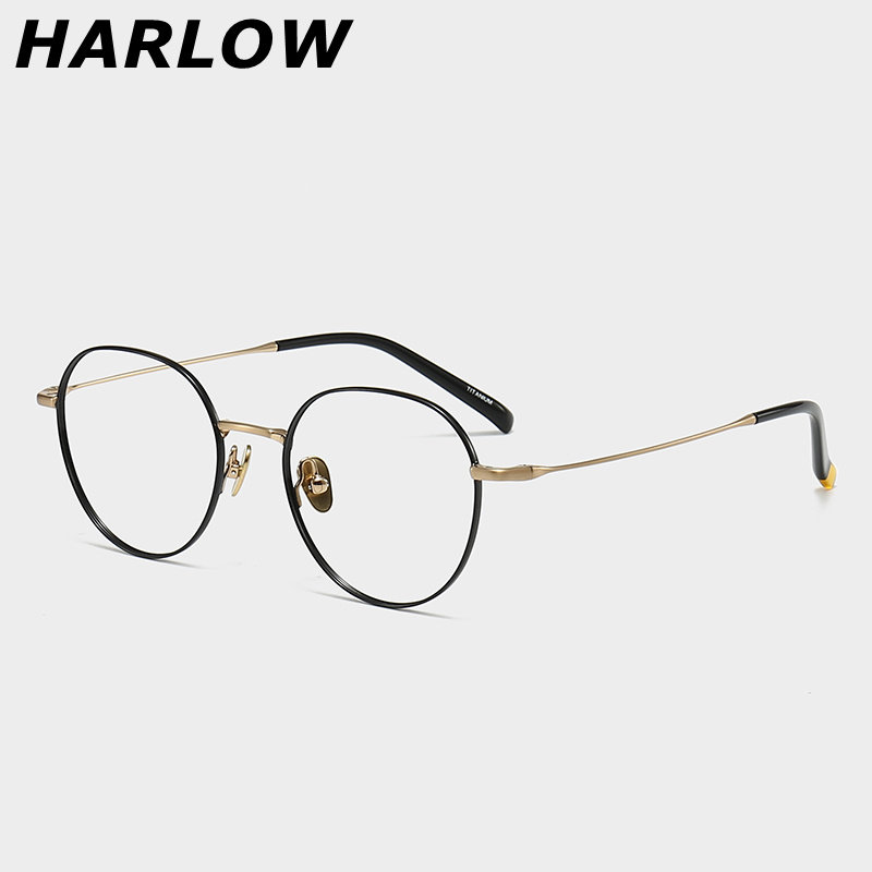 方圆脸素颜金丝女高级感超轻复古专业可配眼镜 纯钛眼镜框近视男款
