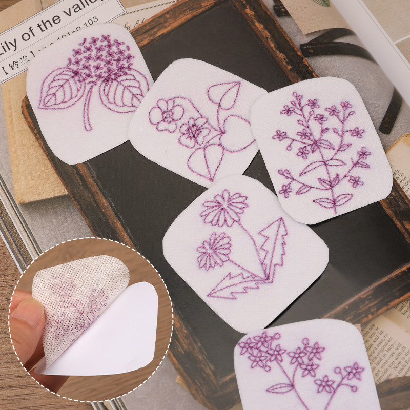手工刺绣花样图案纸手工diy背胶水桶布可缝直接绣T恤毛衣短袖 饰 装