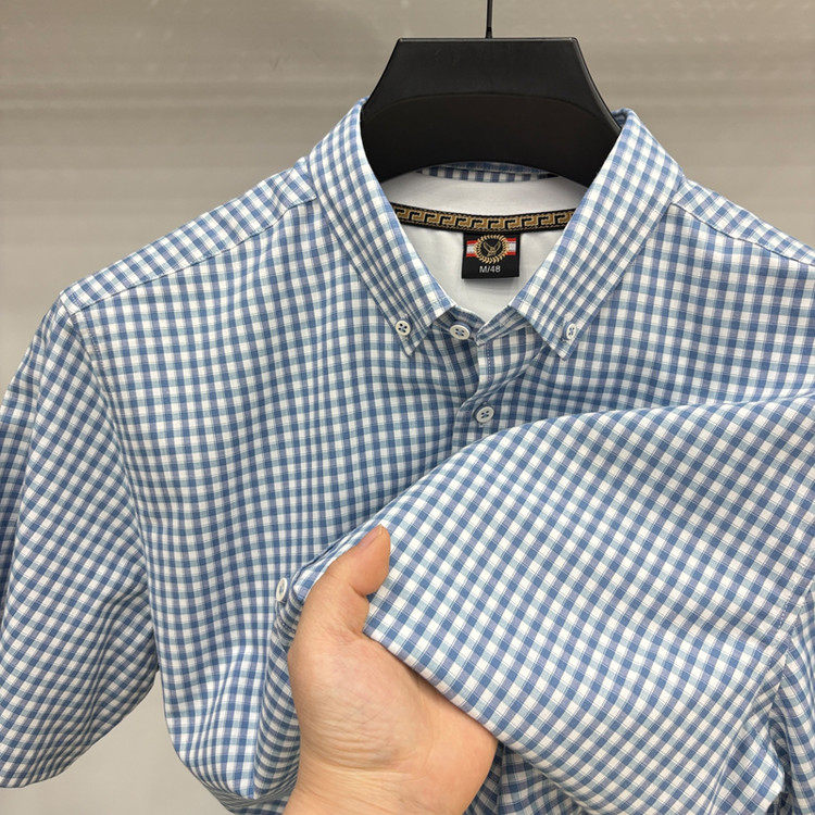 巴家宽松时尚 格子小清新男土短袖 衬衫 都市夏季