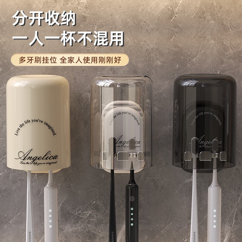 牙杯漱口杯收纳轻奢放电动牙刷架子 牙刷置物架免打孔卫生间壁挂式