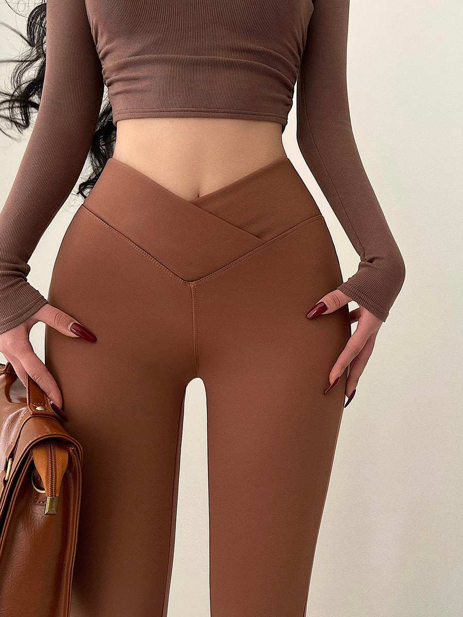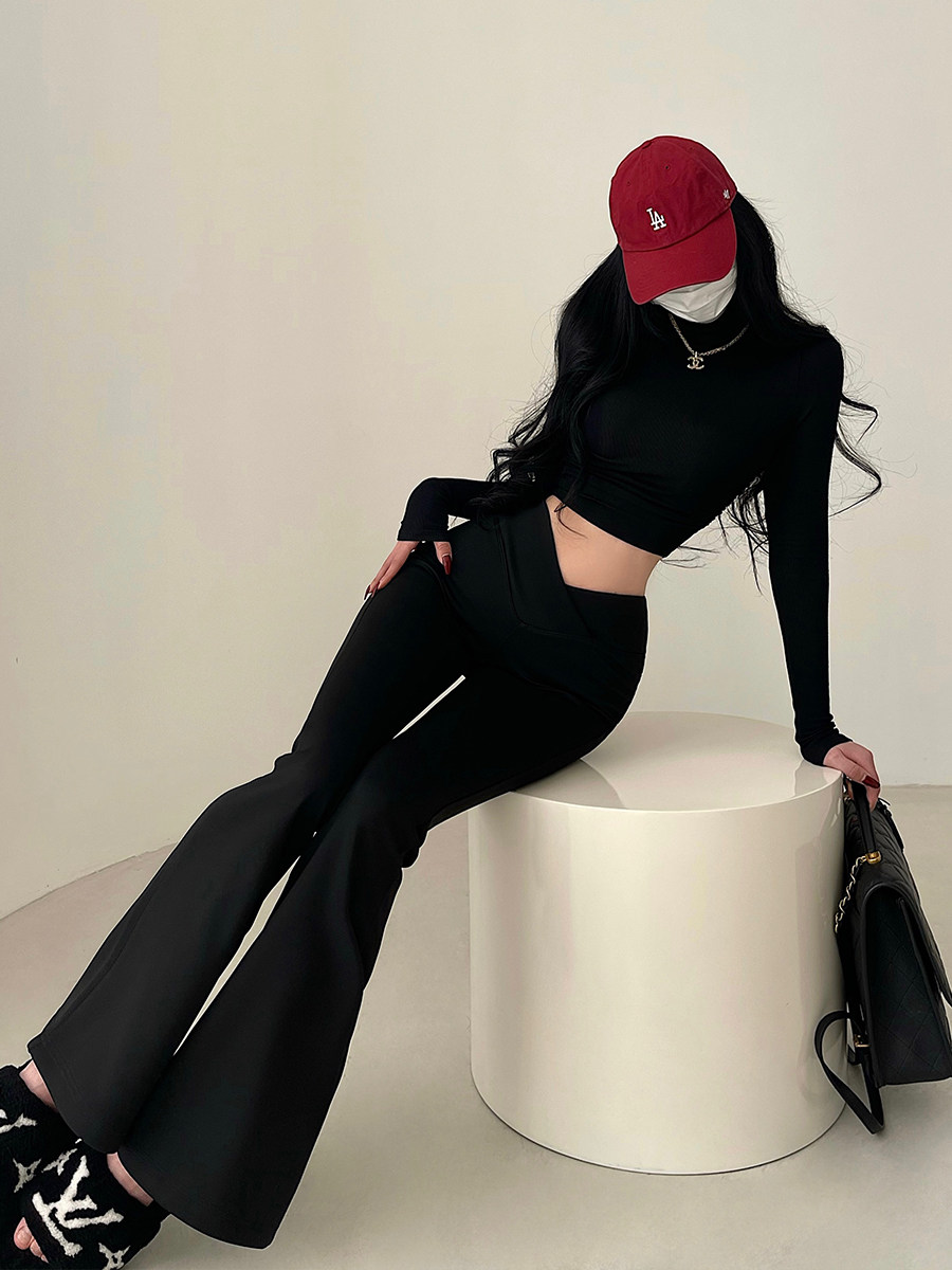 YoungGirlDay 腰紧身显瘦微喇显腿长休闲裤 长裤 女 欧美风高腰V形裤