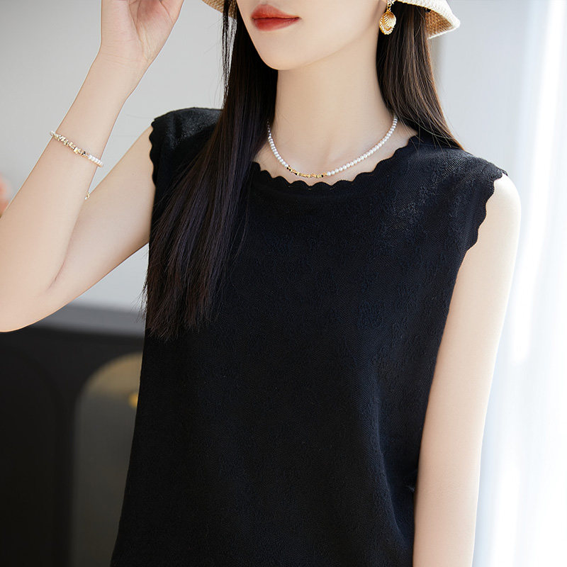 蕾丝打底t恤镂空钩花外穿 洋气精致花边吊带背心女内搭圆领无袖由