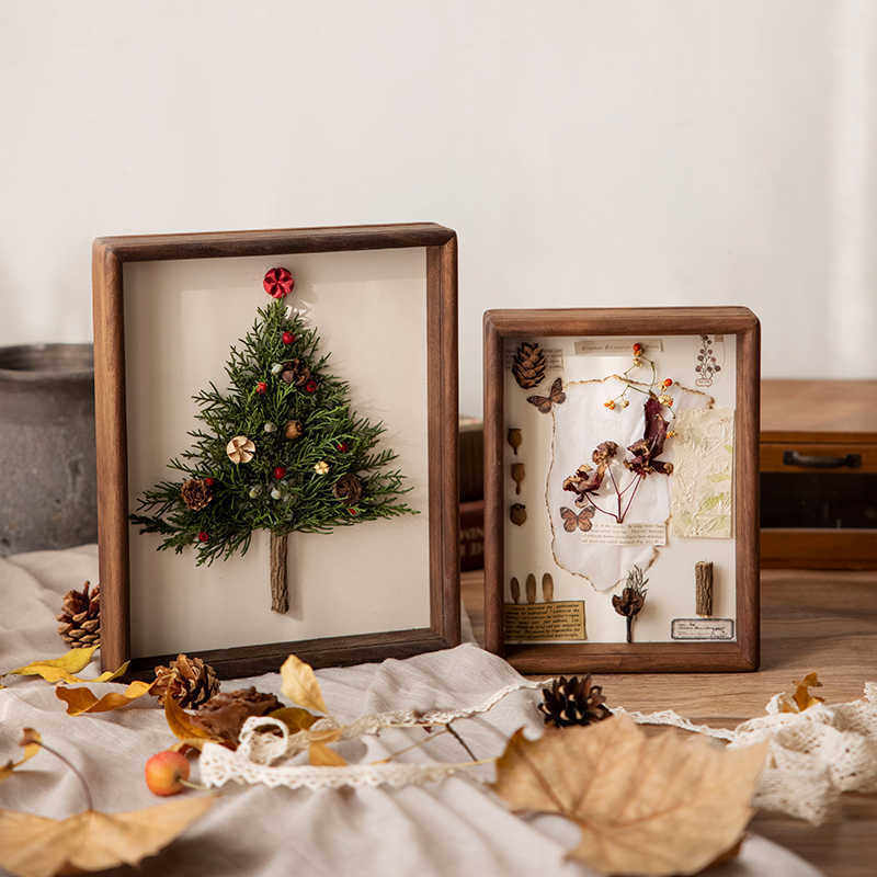 实木干花标本相框6寸78黑胡桃立体中空2.5厘米摆台创意圣诞节画框由