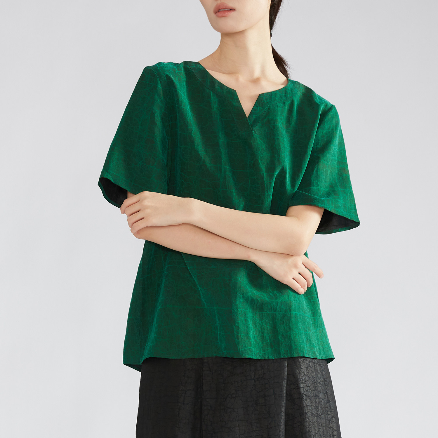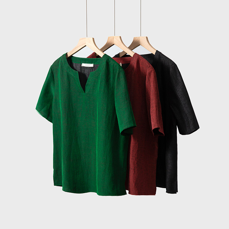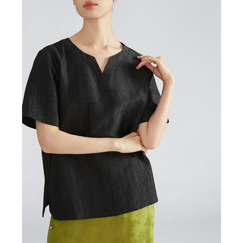 为您提供商品特惠真丝香云纱双面异色老料龟裂纹100桑蚕丝短袖 上衣V领2026新款的详细介绍,