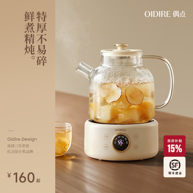 OIDIRE偶点全玻璃养生壶家用办公室小型煮茶壶一体恒温电热烧水壶由