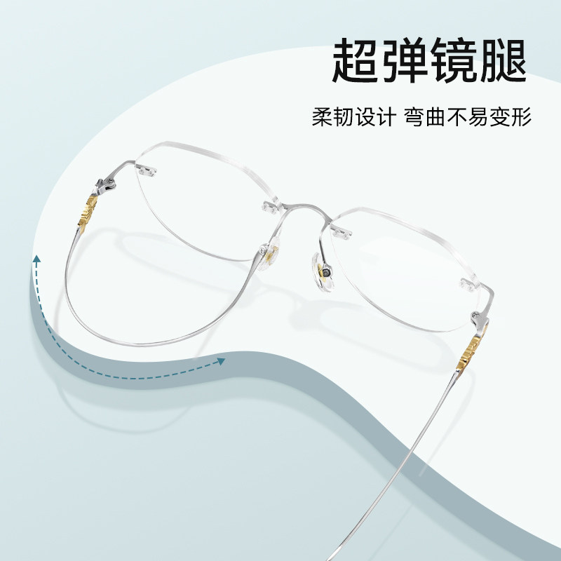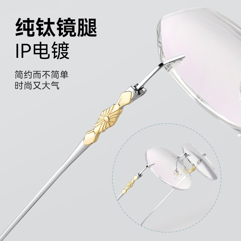 可配有度数纯欲无边框超轻防蓝光眼睛镜架女 纯钛无框近视眼镜男款