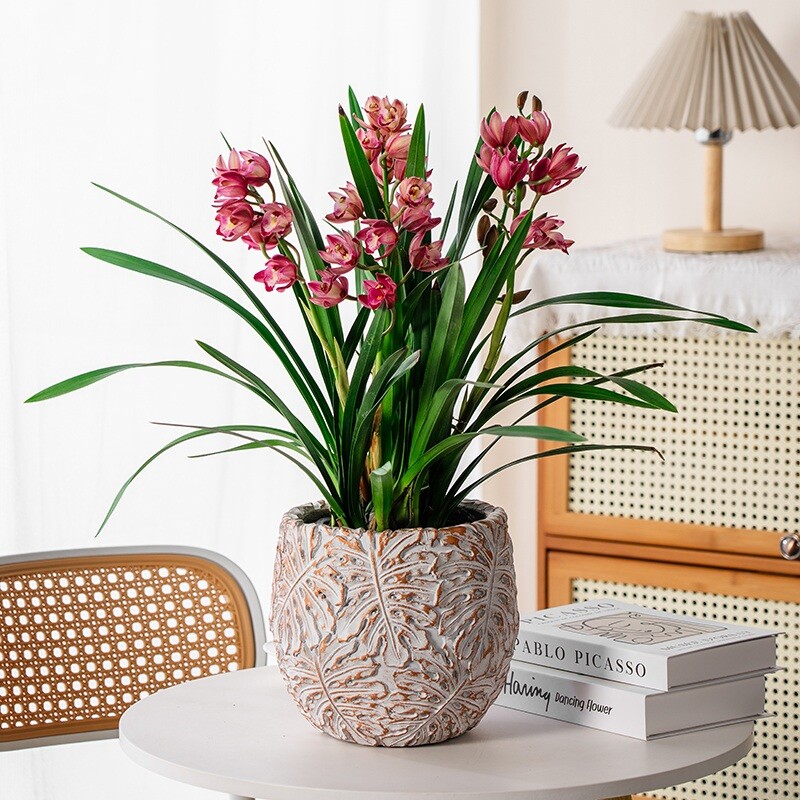 复古花盆镁泥轻奢高级感家用大发财树龟背竹绿植盆栽蝴蝶兰落地盆