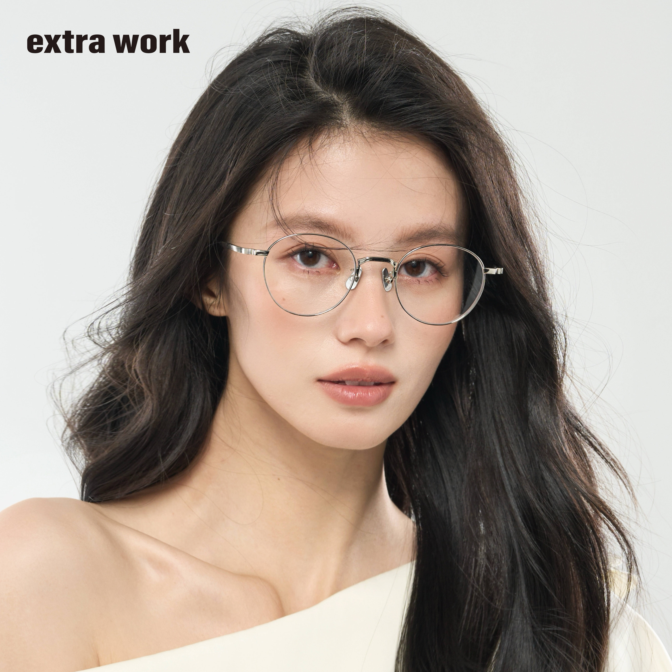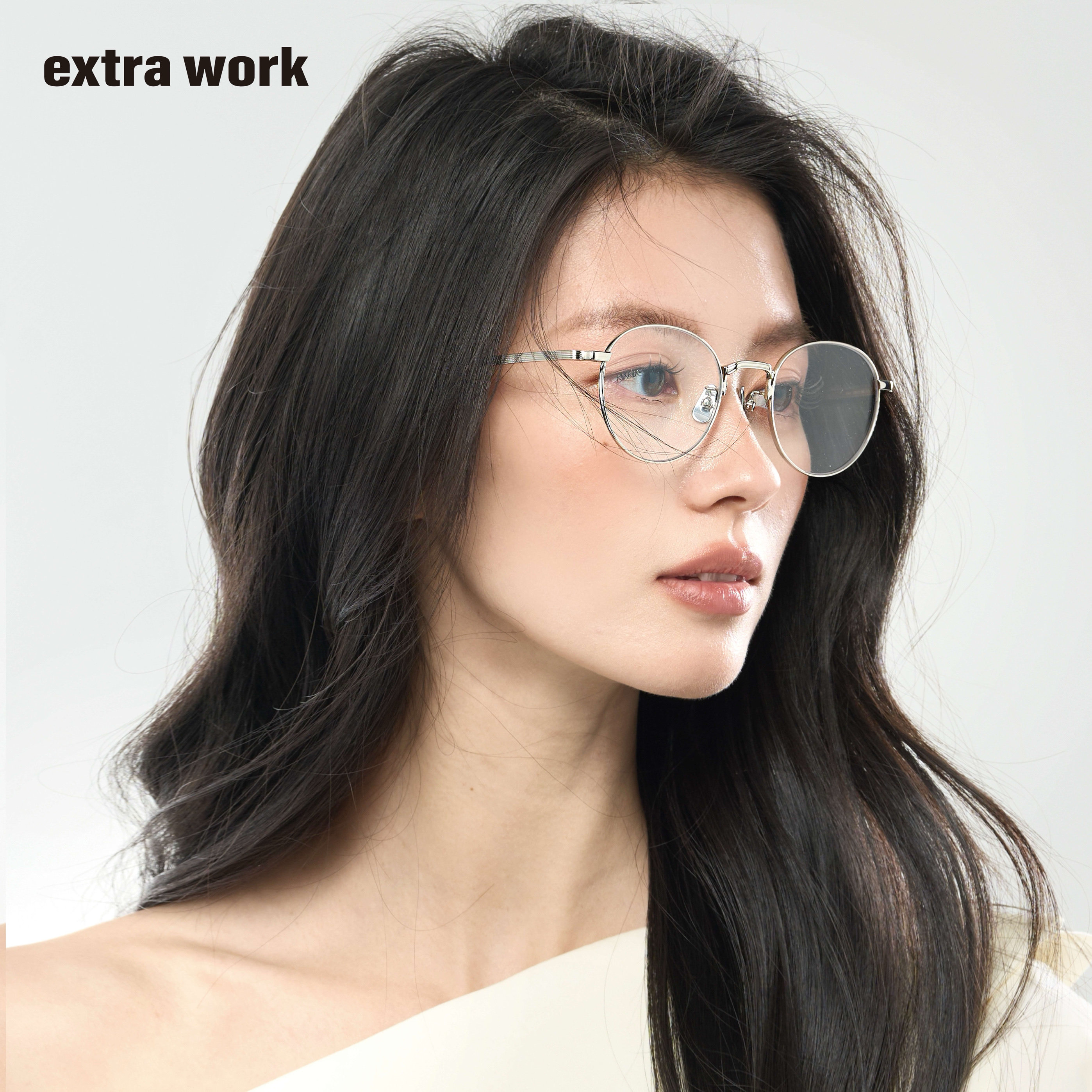 extrawork 圆框钛架近视眼镜纯钛鼻托可配度数Finn 中性暖银韩版