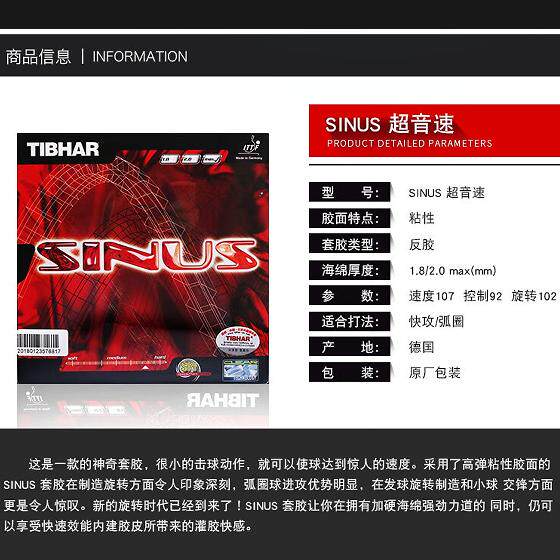 为您提供商品Tibhar挺拔德国sinus一闪超音速阿尔法声音粘内能进口乒乓球套胶的详细介绍,
