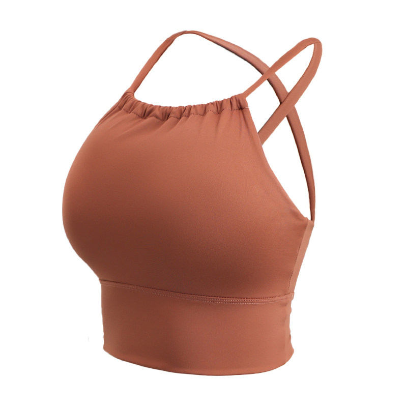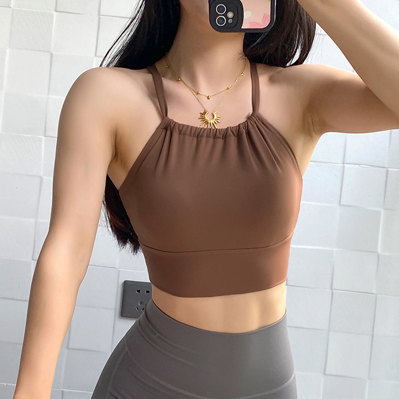 胸垫瑜伽文胸背心 性感挂脖运动内衣女速干防震健身上衣美背一体式