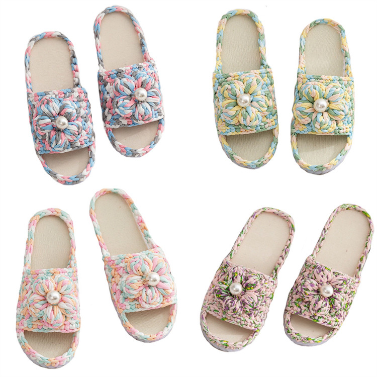高弹布条线手工diy拖鞋 扁线收纳筐坐垫粗毛线团编织材料包包 棉鞋