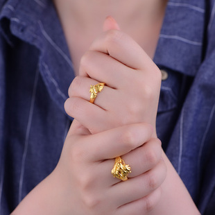 老庙黄金龙凤足金对戒可调节情侣款 戒指套戒结婚送礼男女官方正品由
