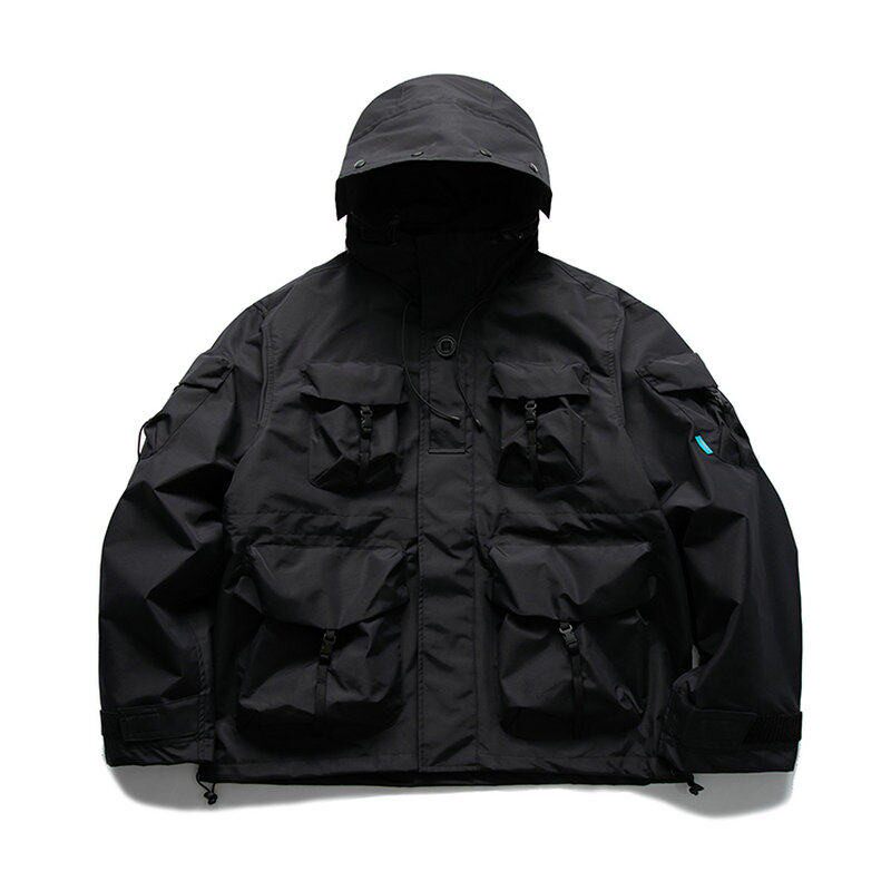 冲锋衣男山系宽松机能夹克防风立体口袋外套 日系潮牌户外连帽工装