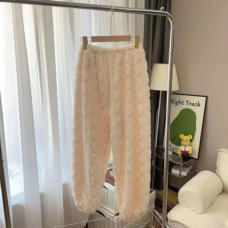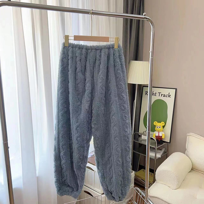 睡裤 珊瑚绒大码 加绒加厚法兰绒束脚裤 200斤胖长裤 家居裤 女秋冬季