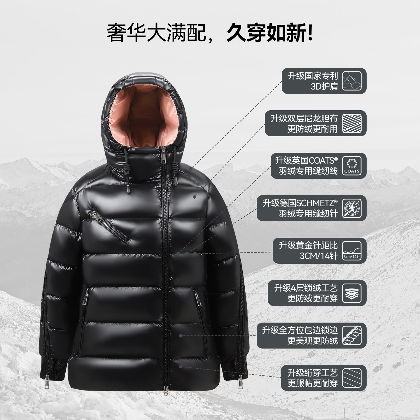 为您提供商品减龄女神连帽羽绒服厚外套9026 蒙口羽皇加拿大进口98鹅绒设计师款的详细介绍,