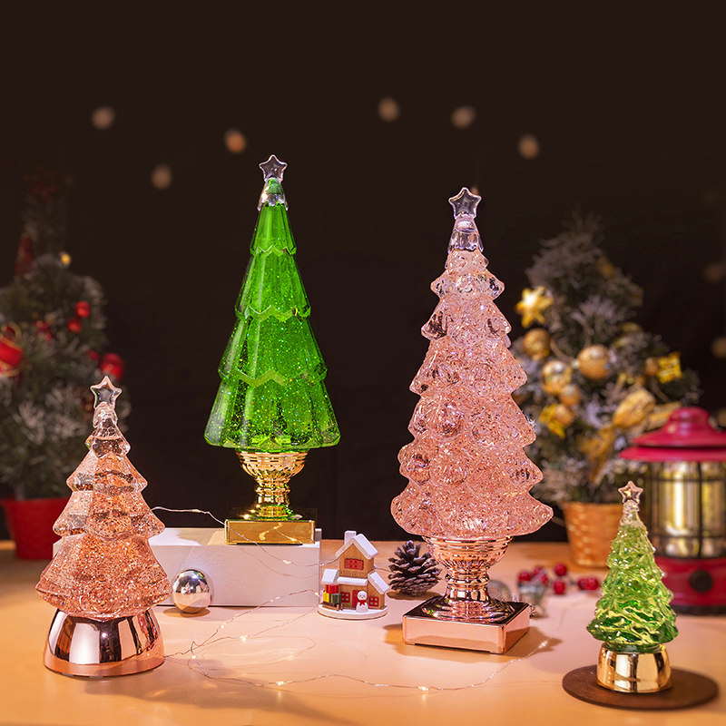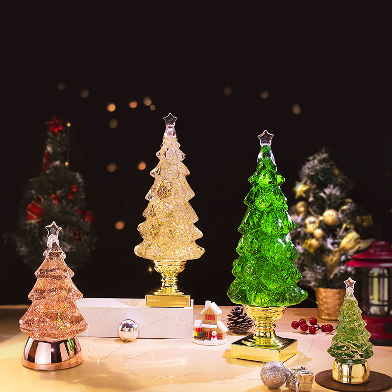 饰品桌面布景氛围灯送女生儿童圣诞节礼物 圣诞树水晶球发光摆件装