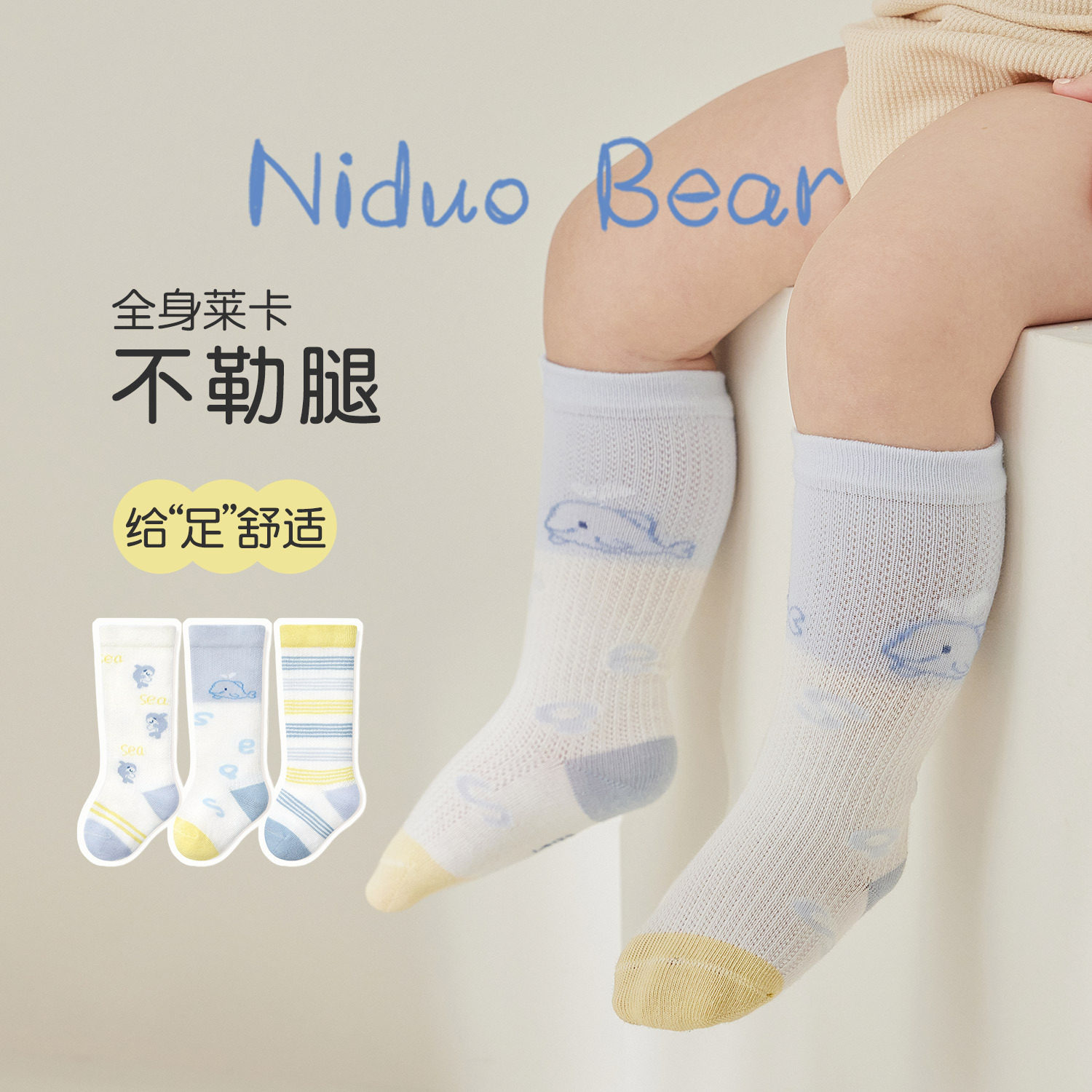 尼多熊2025婴儿袜子夏季 棉袜男宝宝长筒袜无骨婴幼儿袜网眼袜 薄款