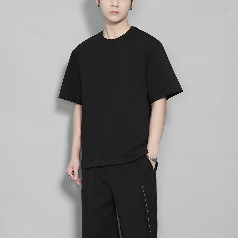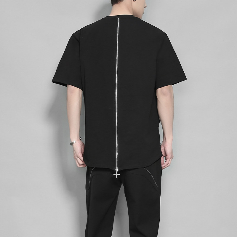 原创潮牌暗黑系男装 港风个性 后背拉链拼接休闲百搭短袖 t恤男 夏季