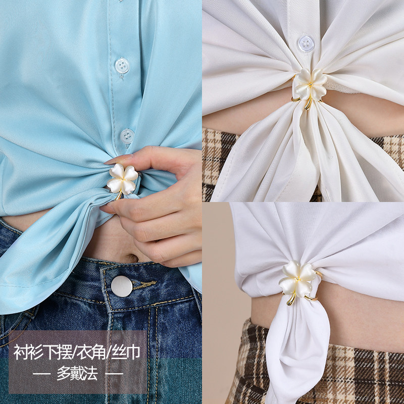 下摆收打结扣环丝巾扣固定扣收腰神器 四叶草衣角扣女衣服T恤衬衫由