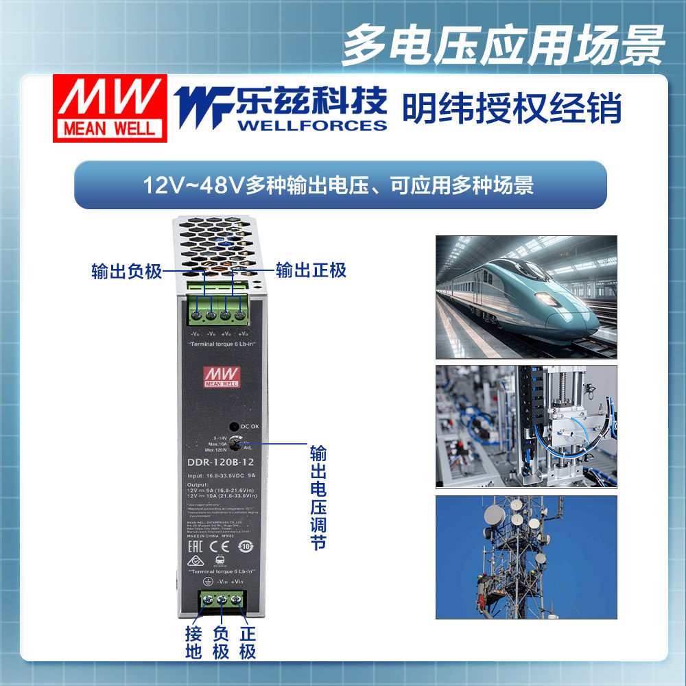 明纬120W导轨电源DDR 12V 120 24V 48V DC铁路ITE安规由