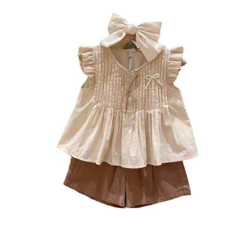 洋气可爱压褶上衣短裤 韩版 洋气2025夏季 新款 两件套潮 女童套装