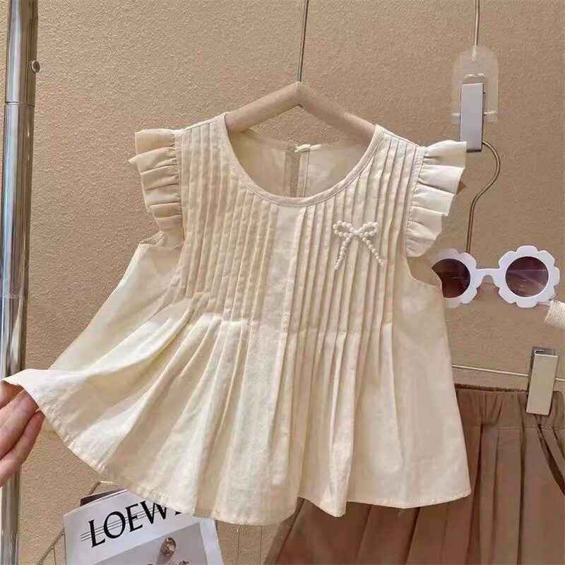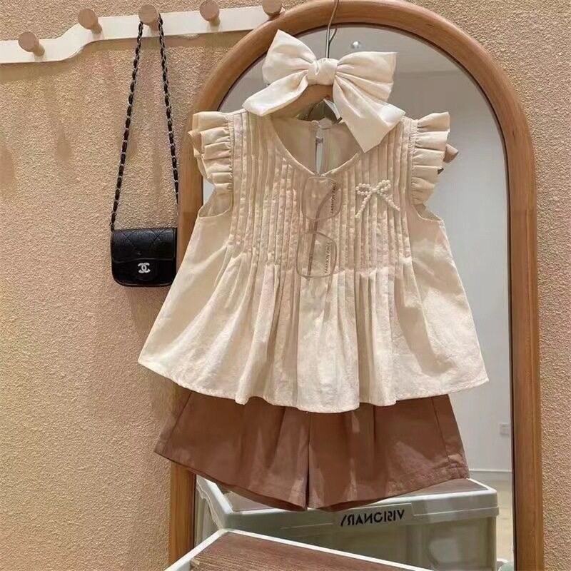 洋气可爱压褶上衣短裤 韩版 洋气2025夏季 新款 两件套潮 女童套装由