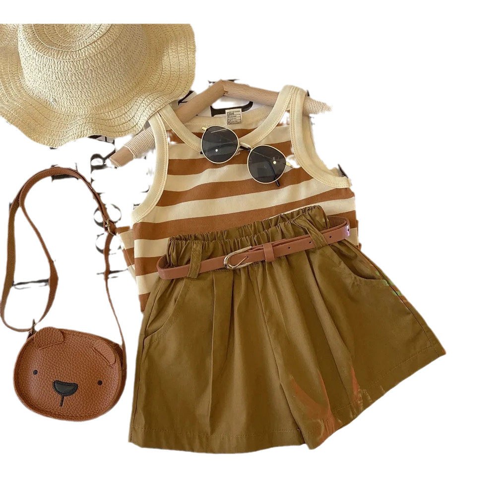 韩版 女童时髦套装 2026夏装 新款 两件套潮 儿童洋气条纹吊带背心短裤由