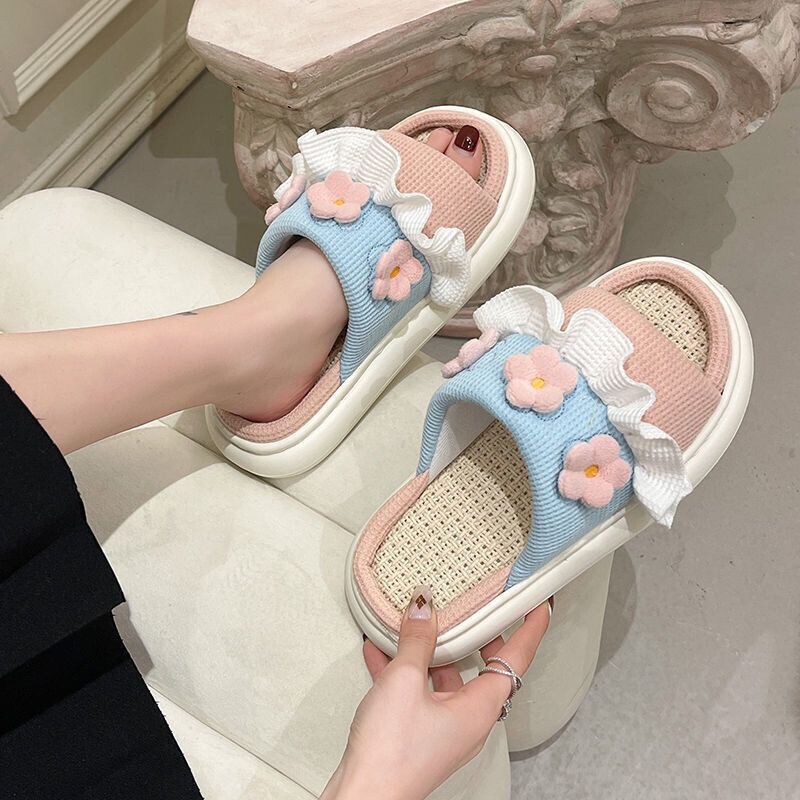 吸汗学生外穿拖鞋 女室内家居春秋可爱厚底棉麻凉拖鞋 亚麻拖鞋