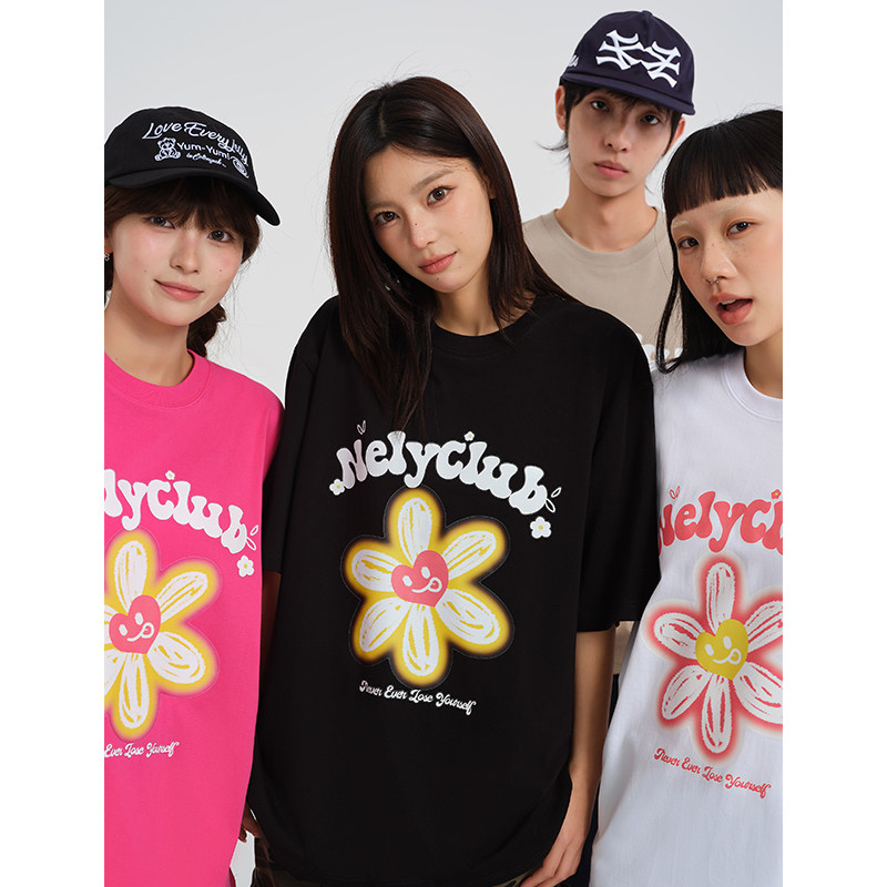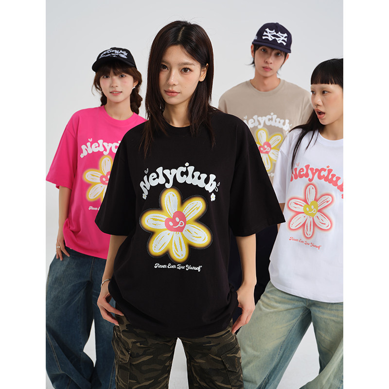 为您提供商品新款 笑脸涂鸦手绘太阳花印花短袖 T恤男女同款 国潮牌夏季 情侣夏装的详细介绍,
