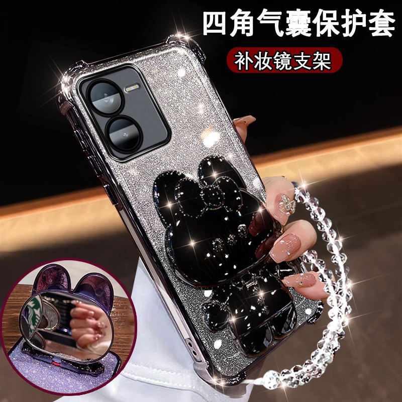 vivoY37pro手机壳V2354A镜头全包vivoY78T可爱镜子支架V2312BA四角防摔vivoY200 超薄y37por闪粉硅胶软壳 新款由