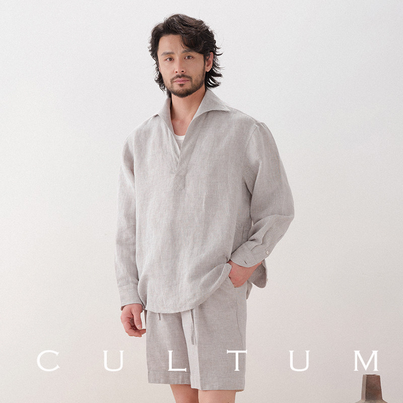 为您提供商品CULTUM休闲宽松一片领半开襟衬衫 男慵懒松弛衬衣 100%法国亚麻的详细介绍,