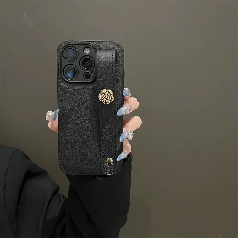 12pro保护套reno11小众reno10简约reno9防摔findx9 8女 立体山茶花皮纹手腕带适用opporeno15手机壳reno14由