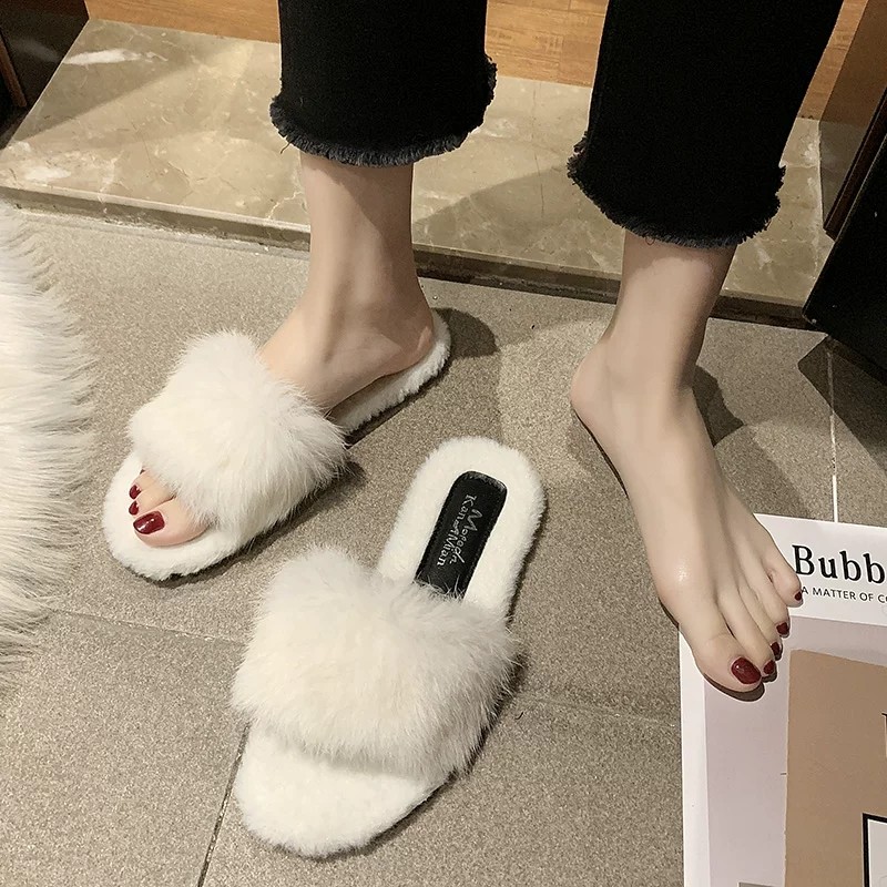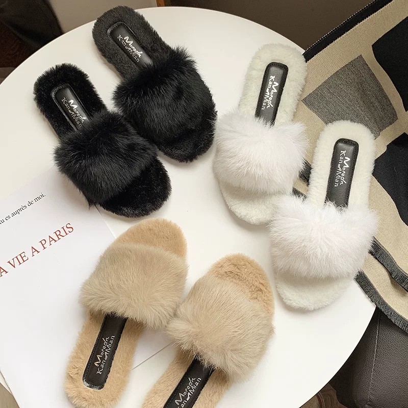 为您提供商品百搭平底时尚 毛毛拖鞋 女2026秋冬季 新款 网红懒人外穿加绒棉拖鞋的详细介绍,