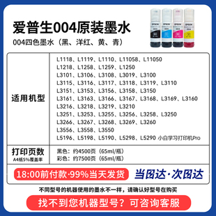 L3353 墨水L3151 L3153 L3253 L3256 L3255 L3156 EPSON爱普生004原装 1258喷墨打印机彩色 L3258 L3355 L3251