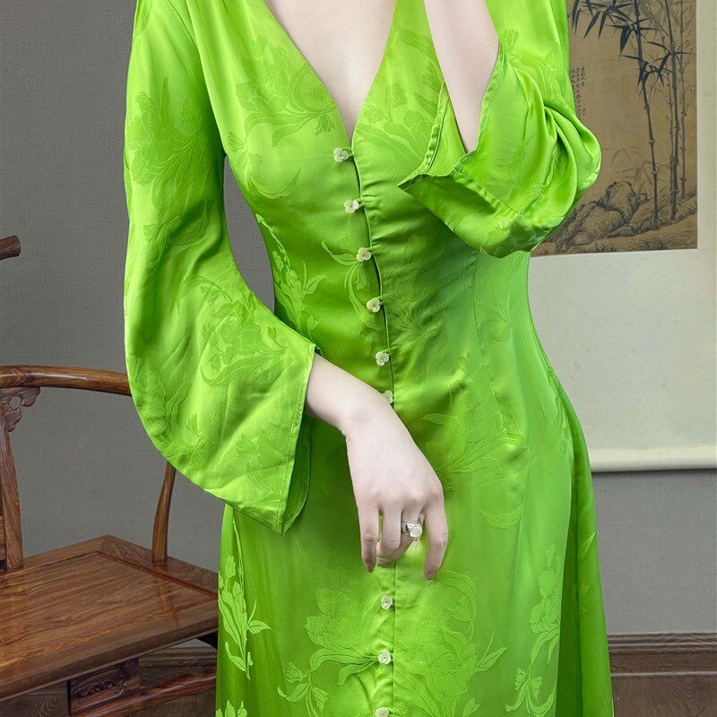 ⭐小红书推荐⭐连衣裙法式 改良真丝提花长袖 新中式 复古单排扣裙子收腰国风长裙夏,所属连衣裙分类,由淘宝网挑选推荐!小红书抖音网红同款!哪里有卖连衣裙法式 改良真丝提花长袖 新中式 复古单排扣裙子收腰国风长裙夏和多少钱质量怎么样✅。