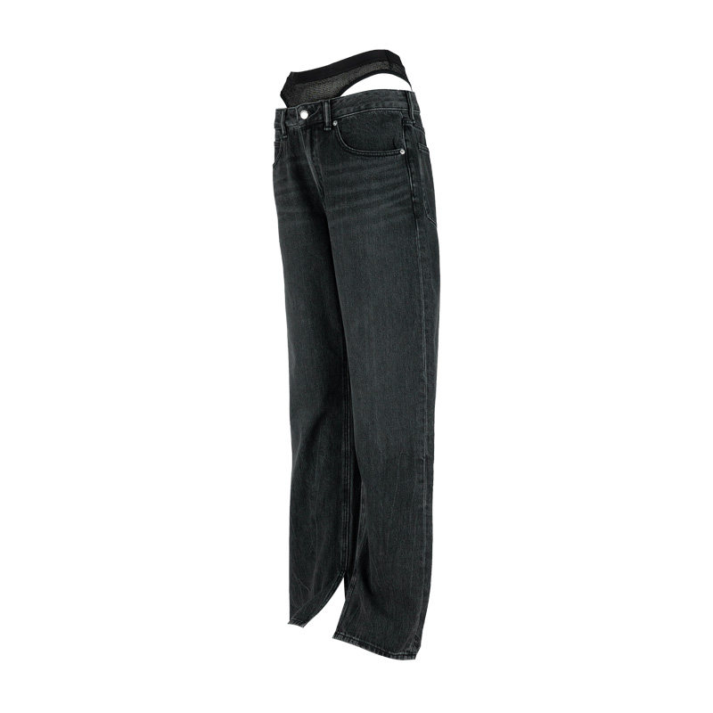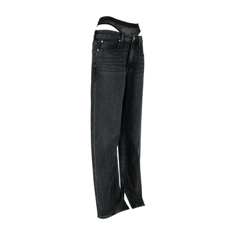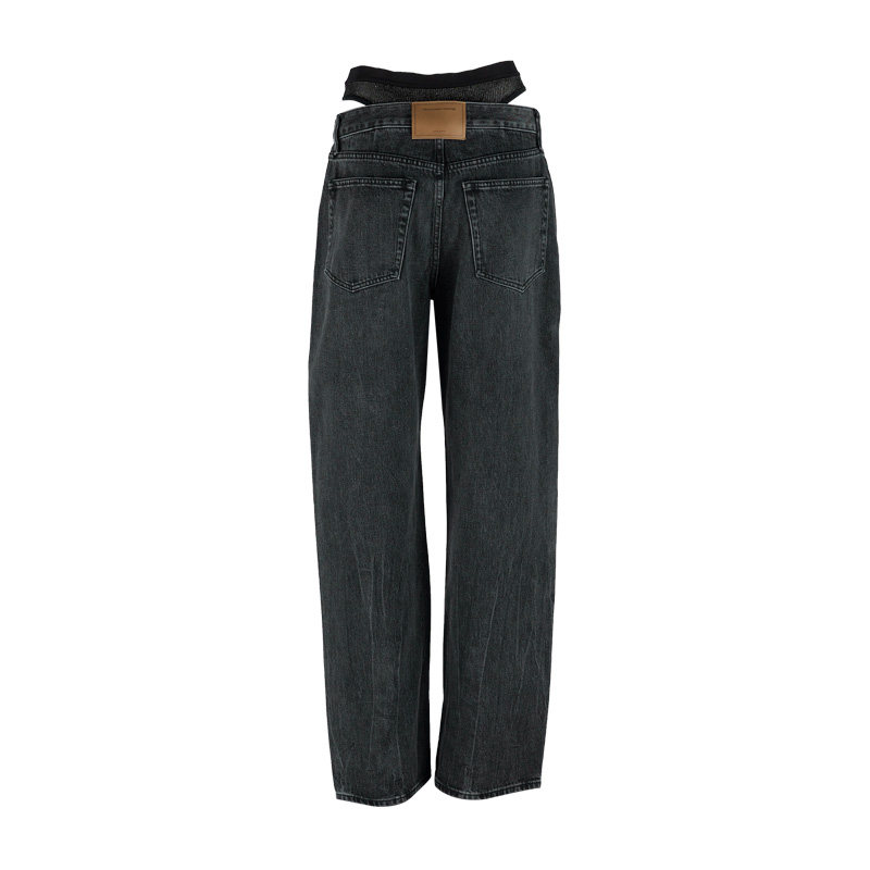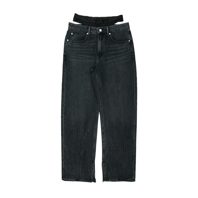 女士2025新款 Alexander Wang女叠搭款 开衩下摆直筒牛仔长裤 XY促销由